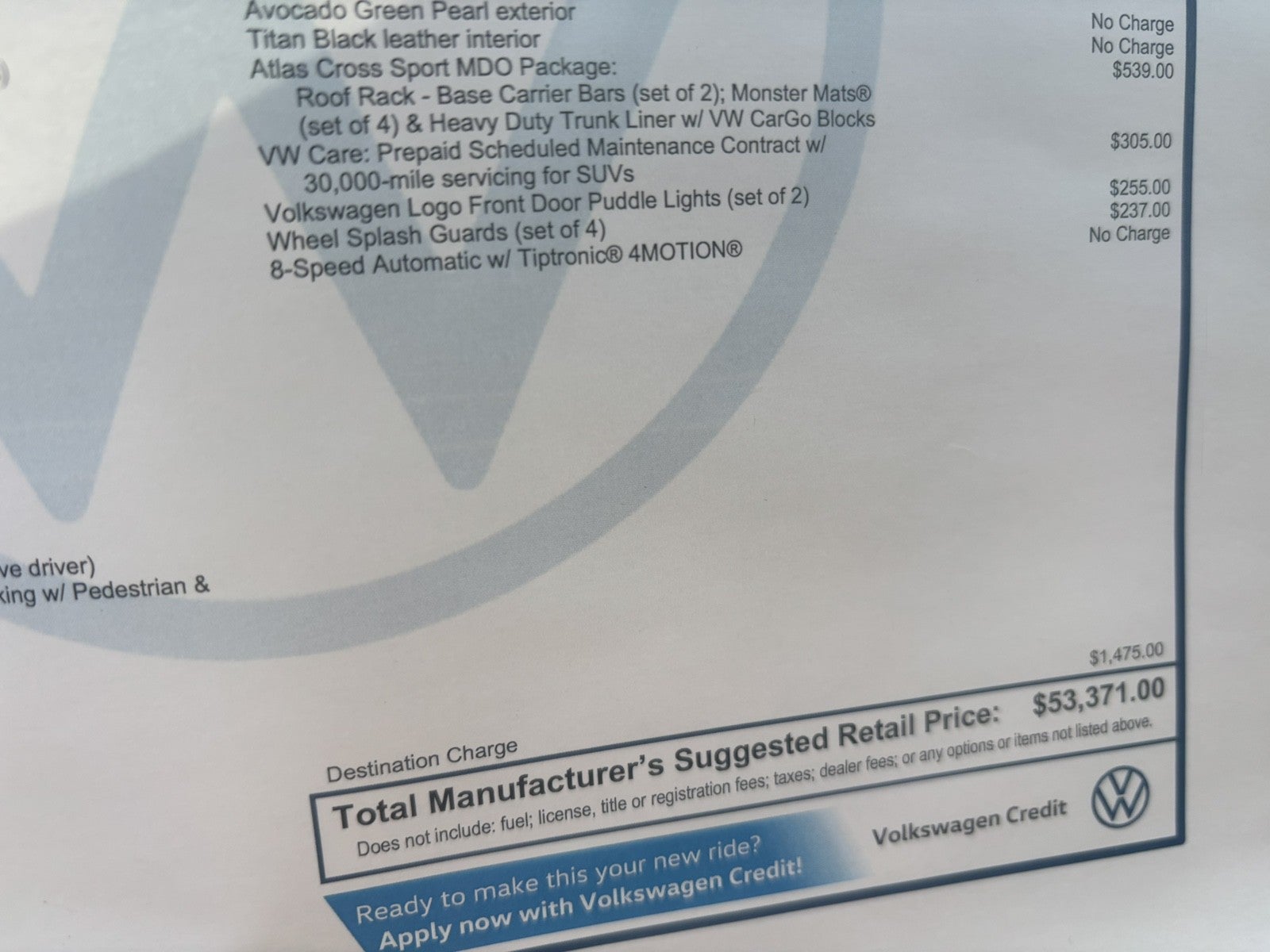 - Vehicle Name: Volkswagen Atlas Cross Sport