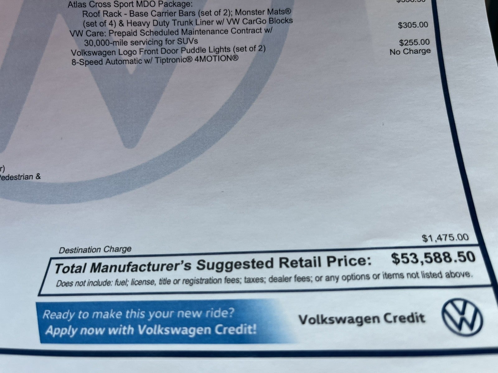 - Vehicle Name: Volkswagen Atlas Cross Sport