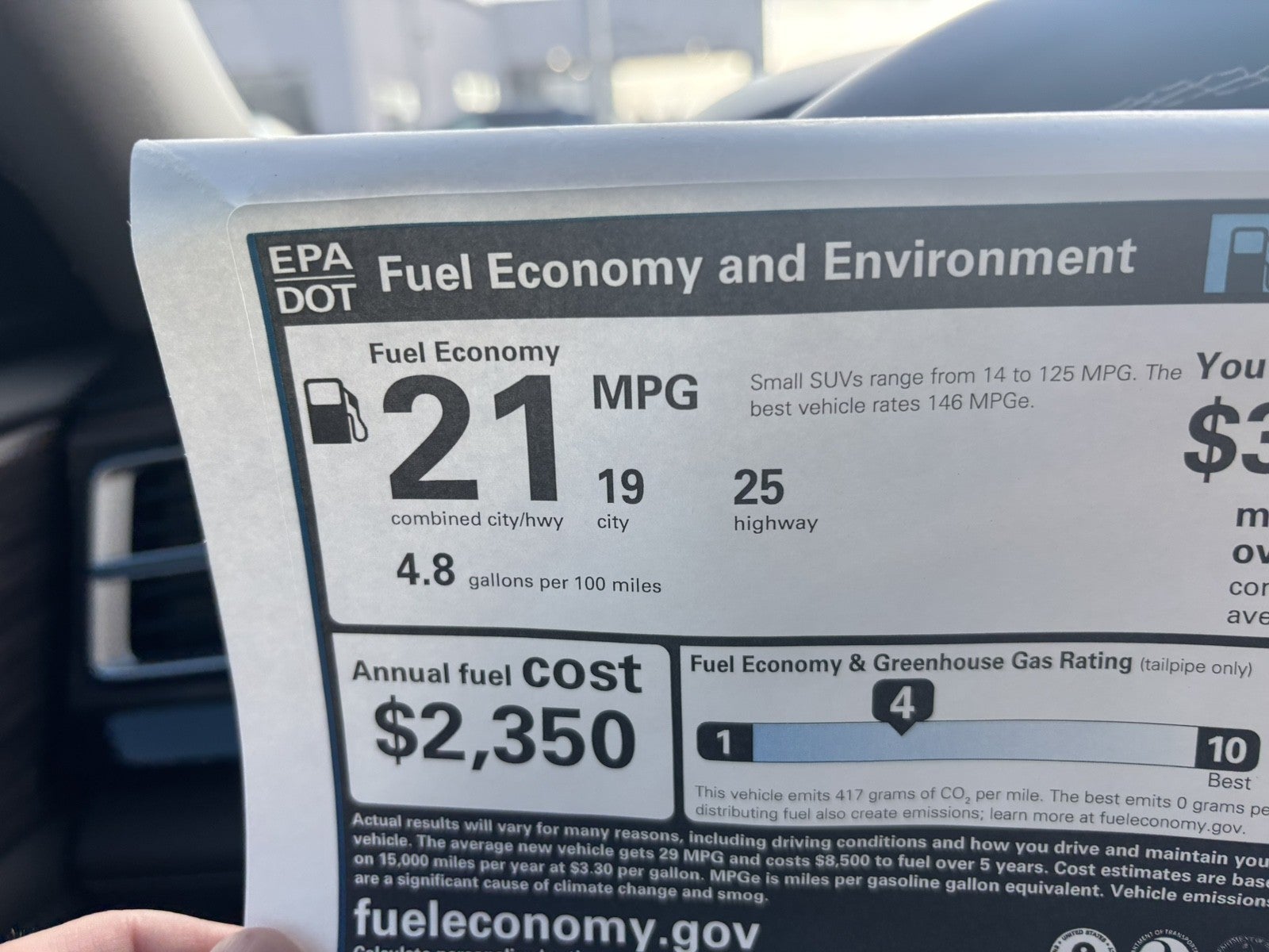 - Fuel Economy Est-Combined (MPG): 21 (2025)