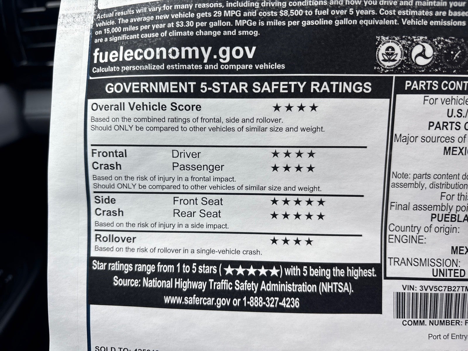 - Fuel Economy Est-Combined (MPG): 31
