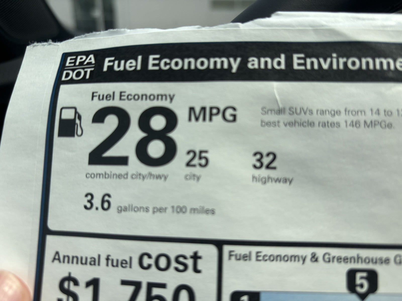 - Fuel Economy Est-Combined (MPG): 28