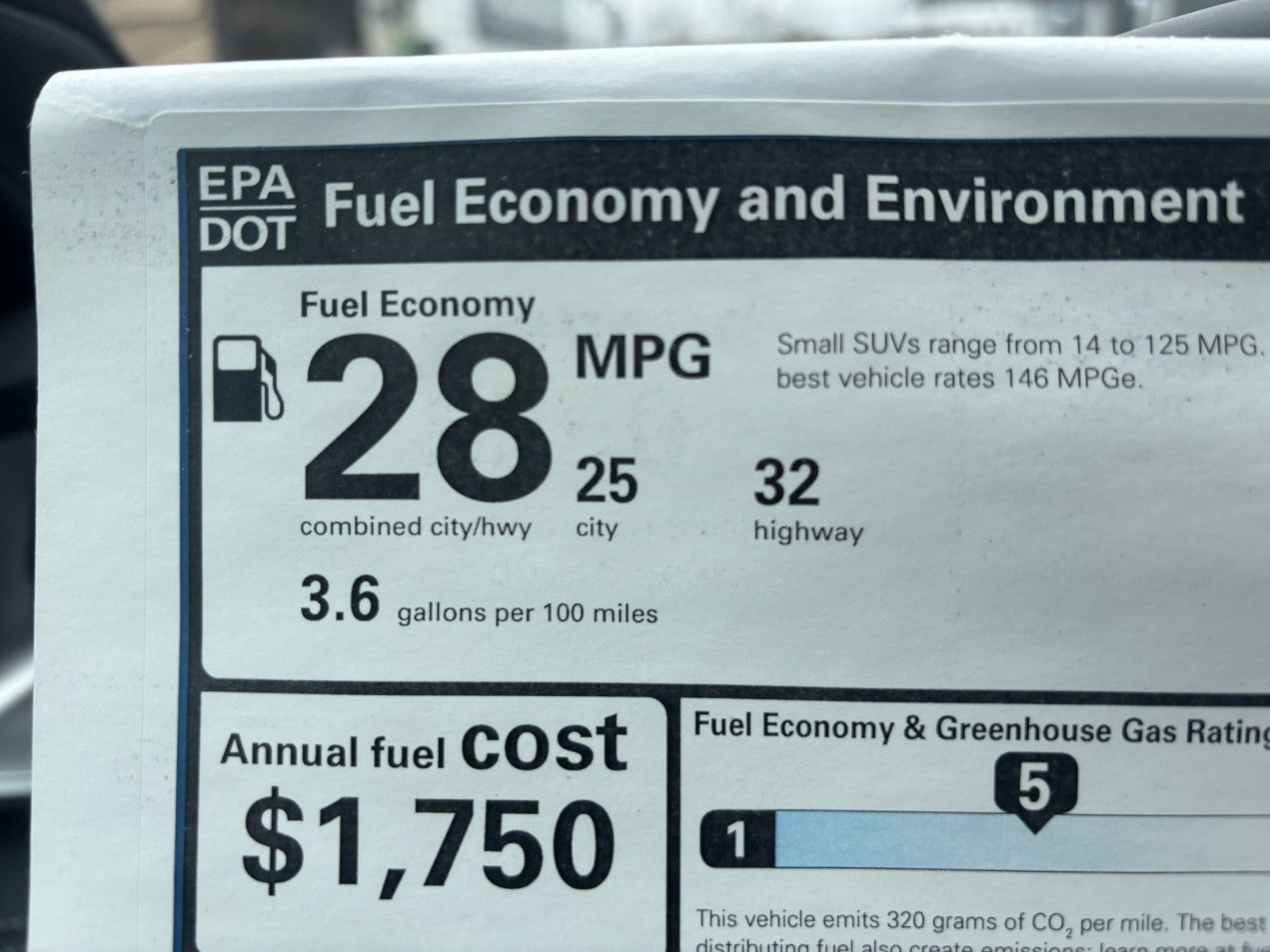 - Fuel Economy Est-Combined (MPG): 28