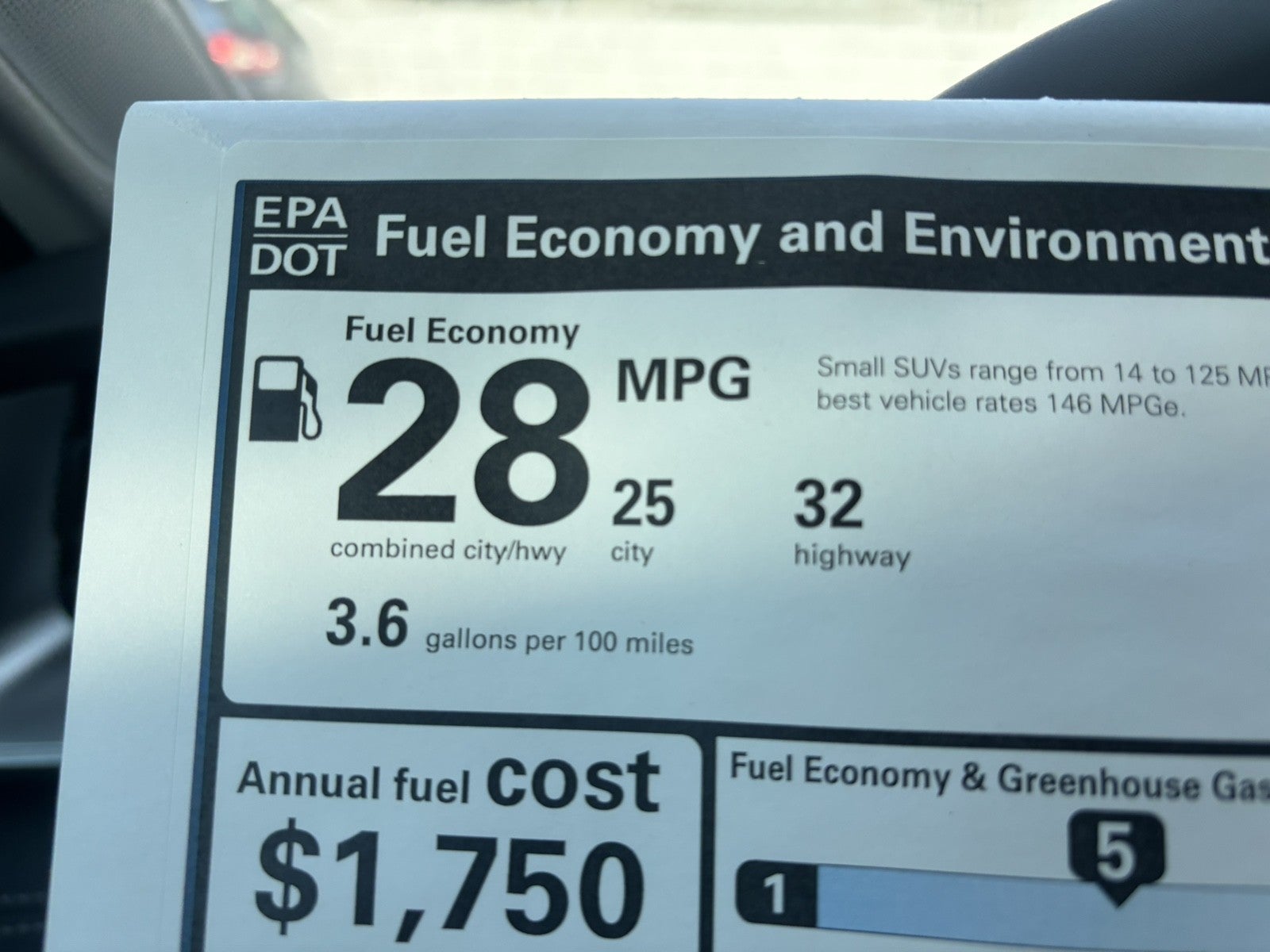 - Fuel Economy Est-Combined (MPG): 28