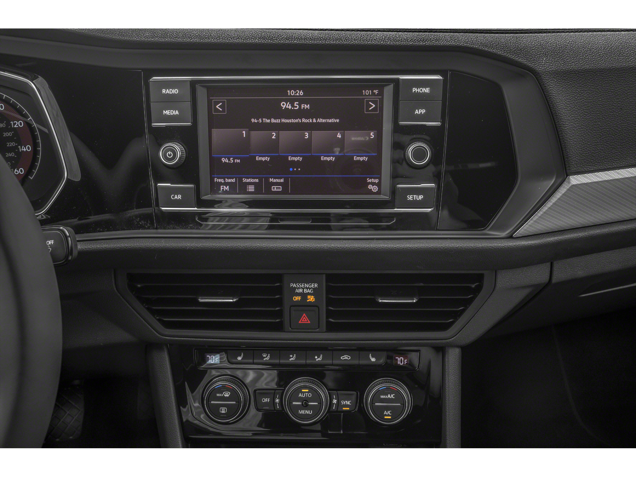- Radio: Composition Color w/6.5" Touchscreen -inc: AM/FM radio and WMA/MP3 player w/USB-C input, App-Connect smartphone integration (w/Apple CarPlay, Android Auto and MirrorLink) via USB, capability for in-vehicle 4G LTE enabled Wi-Fi (cellular data plan required; includes limited trial), capability for VW Car-Net services (capabilities for certain services vary; requires enrollment or subscription), 4-speaker sound system and Bluetooth® connectivity (for compatible devices)